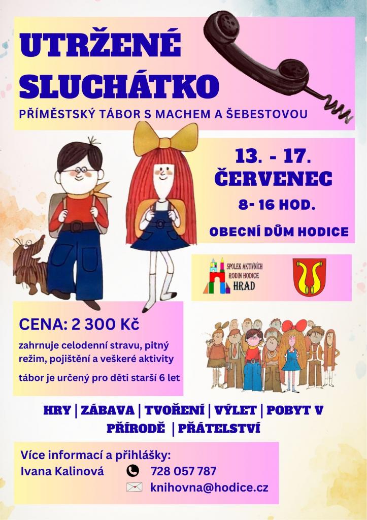 Spolek aktivních rodin Hodice HRAD oznamuje konání příměstského tábora s názvem „Utržené sluchátko s Machem a Šebestovou“.
